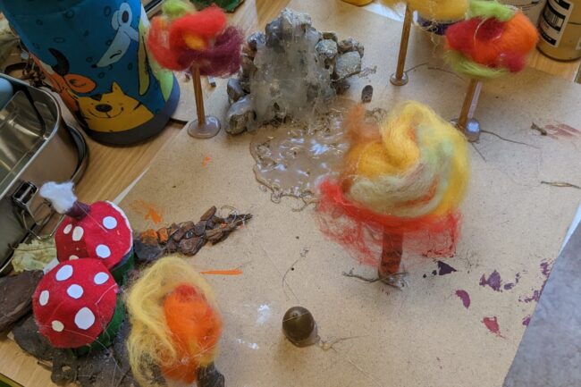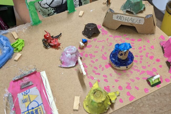 Im dritten Workshop wurden Szenen aus dem Buch plastisch dargestellt, wobei die Teilnehmer*innen Miniaturwelten schufen und ihre eigenen Interpretationen der Geschichte einfließen ließen.