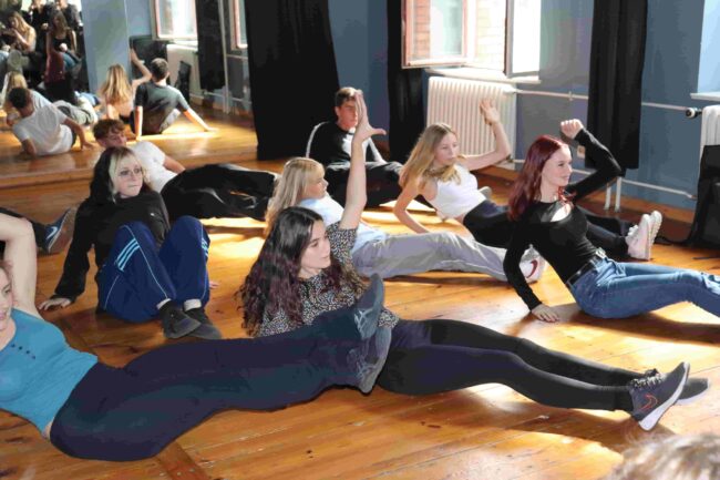 In der Choreografie-Gruppe wurde sich auf den Aspekt der inneren Zerrissenheit, des inneren Kampfes fokussiert. Der Workshopleiter hat einige Schritte für die finale Choreografie eingebracht, jedoch haben die SuS die Choreografie größtenteils gemeinsam mit der Gruppe entwickelt.