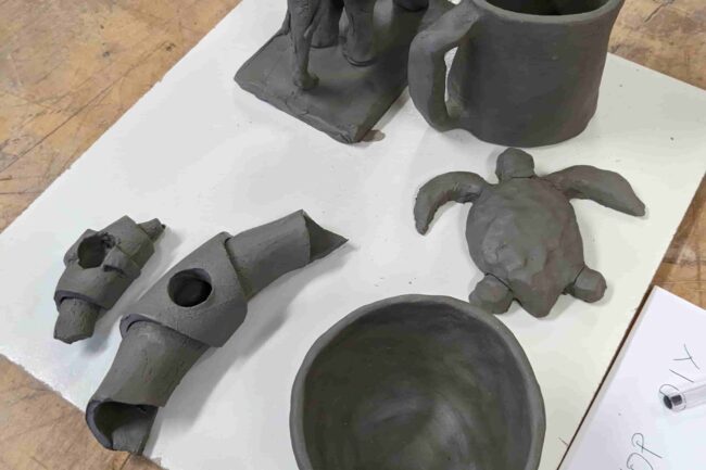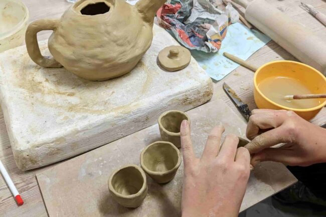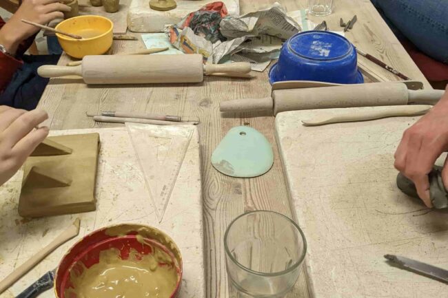 Die Teilnehmenden konnten zwischen den Angeboten wechseln, so dass nicht nur viele neue Erfahrungen gemacht wurden, sondern auch alltagspraktische Accessoires und Geschirr mit eigener Note entstanden.