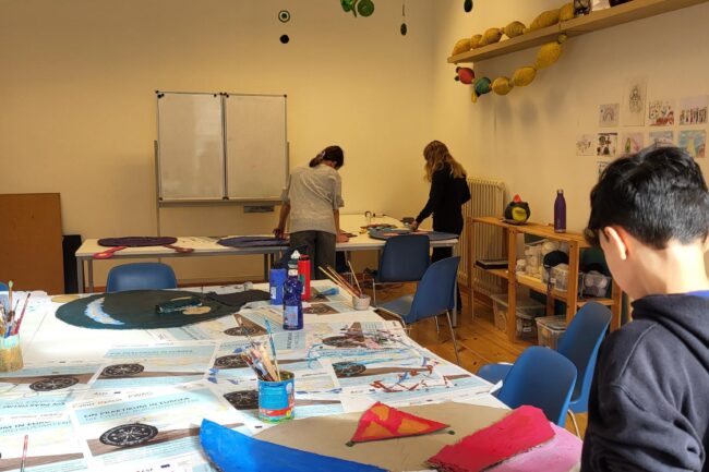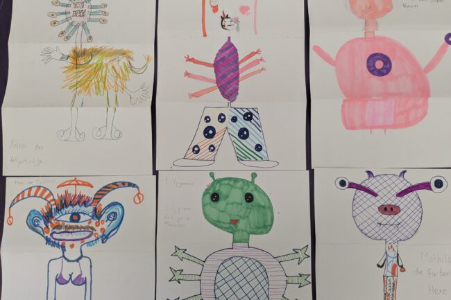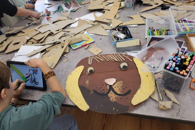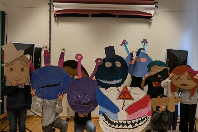 Damit die Charaktere richtig lebendig wurden, gestalteten die Teilnehmenden außerdem Masken ihrer Hauptfiguren. Zum Abschluss erarbeiteten alle gemeinsam ein kleines Theaterstück, in dem ihre erfundenen Figuren miteinander auf der Bühne agierten. Ein Workshop voller Ideen, Zeichenspaß, Spielfreude und kreativem Ausdruck.