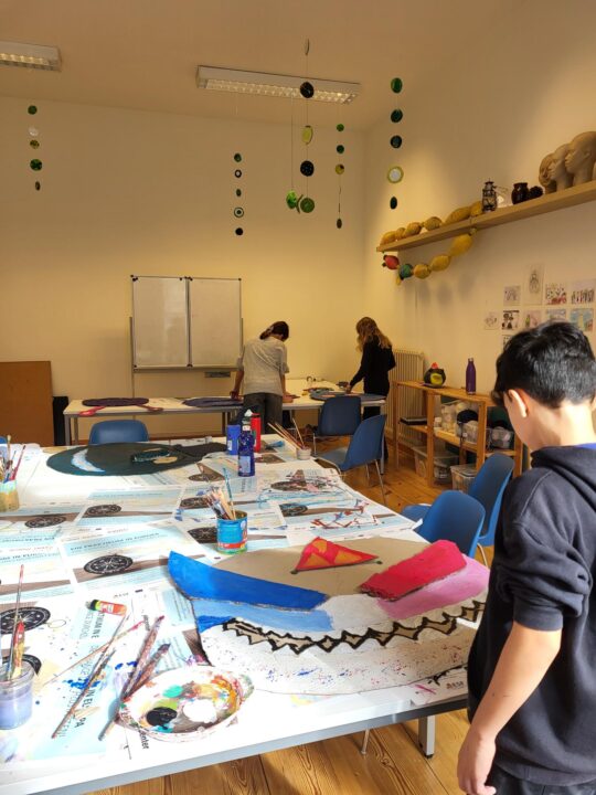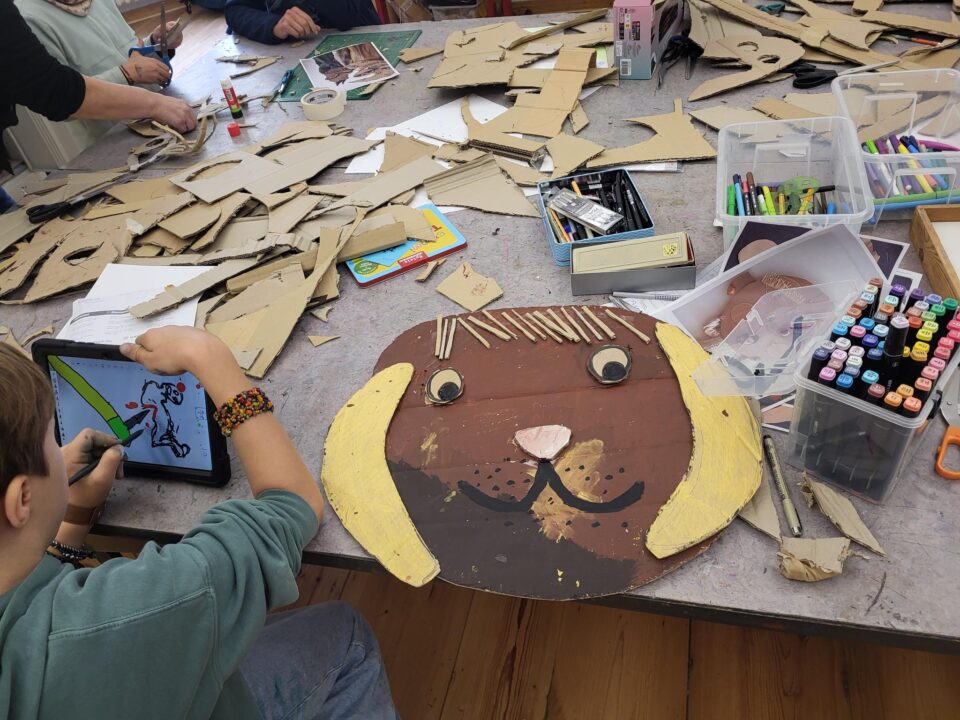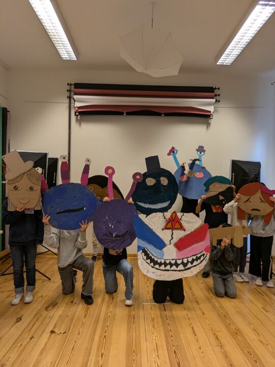 Damit die Charaktere richtig lebendig wurden, gestalteten die Teilnehmenden außerdem Masken ihrer Hauptfiguren. Zum Abschluss erarbeiteten alle gemeinsam ein kleines Theaterstück, in dem ihre erfundenen Figuren miteinander auf der Bühne agierten. Ein Workshop voller Ideen, Zeichenspaß, Spielfreude und kreativem Ausdruck.