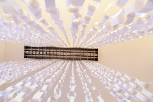 Die Ausstellung zeigte verschiedenste Kunstobjekte aus Papier. Beteiligt waren unter anderem Kurs-Kinder, -Jugendliche und junge Erwachsene des Weinmeisterhauses, die Schule am Zillepark, die Kastanienbaum-Grundschule und die Gustav-Falke-Schule, der Abenteuerspielplatz, die Jugendkunstschule Mitte, Farbklang, Werk 9, der Kinder Klub Mitte und andere Jugendeinrichtungen. Kuratorin war Pura Kauf.