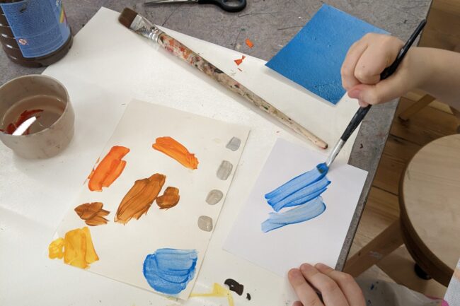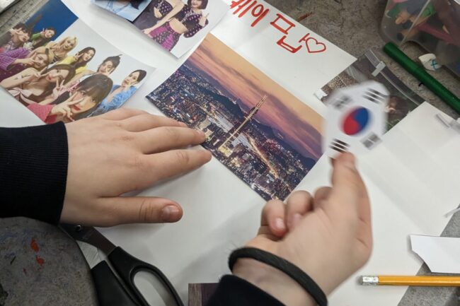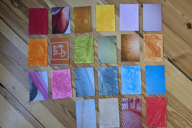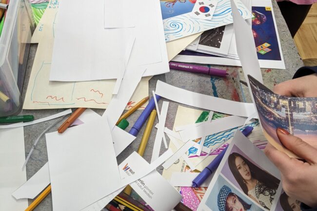 Nachdem wir genügend Inspiration gesammelt hatten, kehrten wir zurück, um unsere Eindrücke künstlerisch und kreativ zu verarbeiten. Mit verschiedenen Materialien und Techniken (Collage, Farbe, Plastisches Gestalten, Interviews…) drückten wir unsere Gedanken und Empfindungen aus, um etwas Neues zu schaffen.