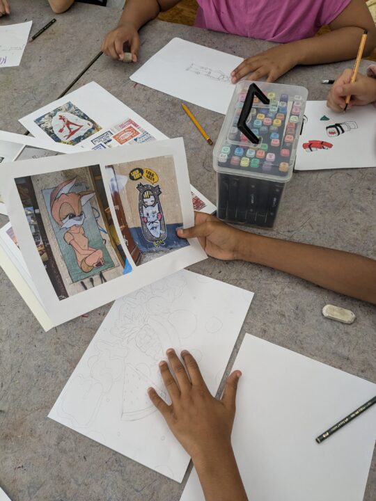 An den folgenden Tagen lernten die Teilnehmer*innen verschiedene Techniken der Street Art kennen: Sie sprühten Graffiti, erstellten Schablonen für Stencils und entwickelten kreative Paste-ups aus Papier. Jede Technik wurde ausführlich erprobt und half den Kindern, ihre künstlerischen Fähigkeiten weiterzuentwickeln.