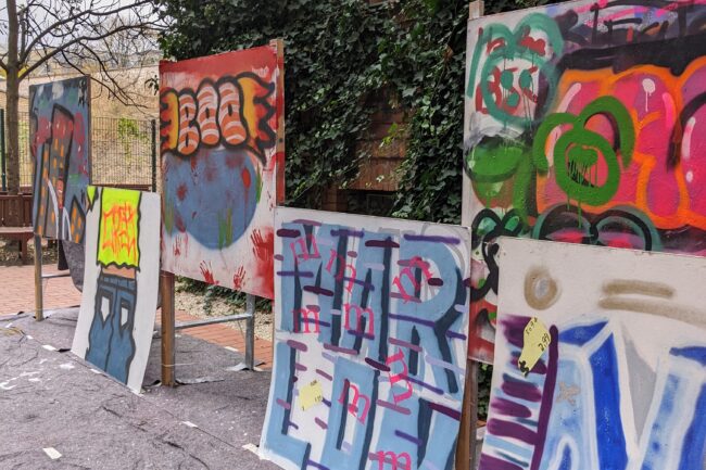 Im Workshop „StreetArt als Message“ hatten Kinder die Gelegenheit, die Welt der urbanen Kunst zu entdecken und ihre eigenen individuellen Werke zu schaffen. An mehreren Tagen lernten sie verschiedene Techniken kennen: Sie sprühten Graffiti, erstellten präzise Schablonen für Stencils und entwickelten kreative Paste-ups aus Papier. Jede Technik wurde ausführlich erprobt und half den Teilnehmer*innen, ihre künstlerischen Fähigkeiten weiterzuentwickeln.