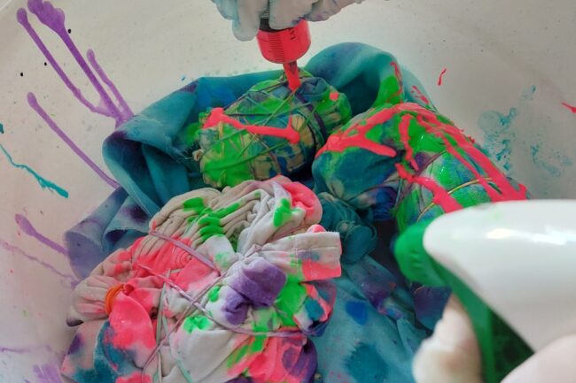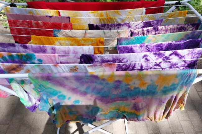Tag 1: Batik war an der Reihe und wir haben alle den Sommer auf unsere Kleidung gezaubert. Die knalligen Farben und die abgefahrenen Muster haben uns alle umgehauen. Die Vorfreude auf die nächsten Tage war echt spürbar!